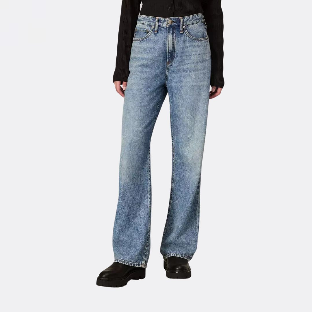 The Logan is a laid-back, wide-leg, mid-rise jean made from ultra-light Featherweight denim. With a roomy cut through the hip and thigh, it doesn't get more comfortable than this. Pro tip: take your natural size and wear low on your waist for a relaxed look or size down for a higher rise. Available in Audrey, a light indigo wash.